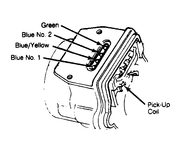 2. Using an ohmmeter, measure resistance between Green and No. 2 Blue wire terminals on pick-up coil. Pick-up coil resistance is 650-850 ohms at 70°F (20°C).