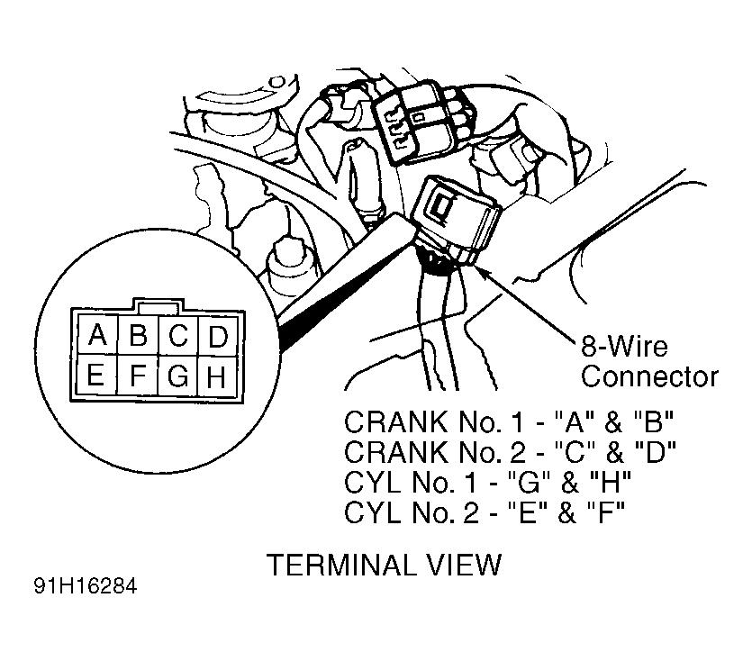 - Using a DVOM (preferably with bar-graph function) on low-volt scale, check each sensor for pulse voltage signal at indicated ECU harness terminals with engine cranking. See ECU INPUT SIGNAL & RESISTANCE TEST TERMINALS table. If pulse signal is present, sensor is okay. If pulse signal is not present, go to next step.