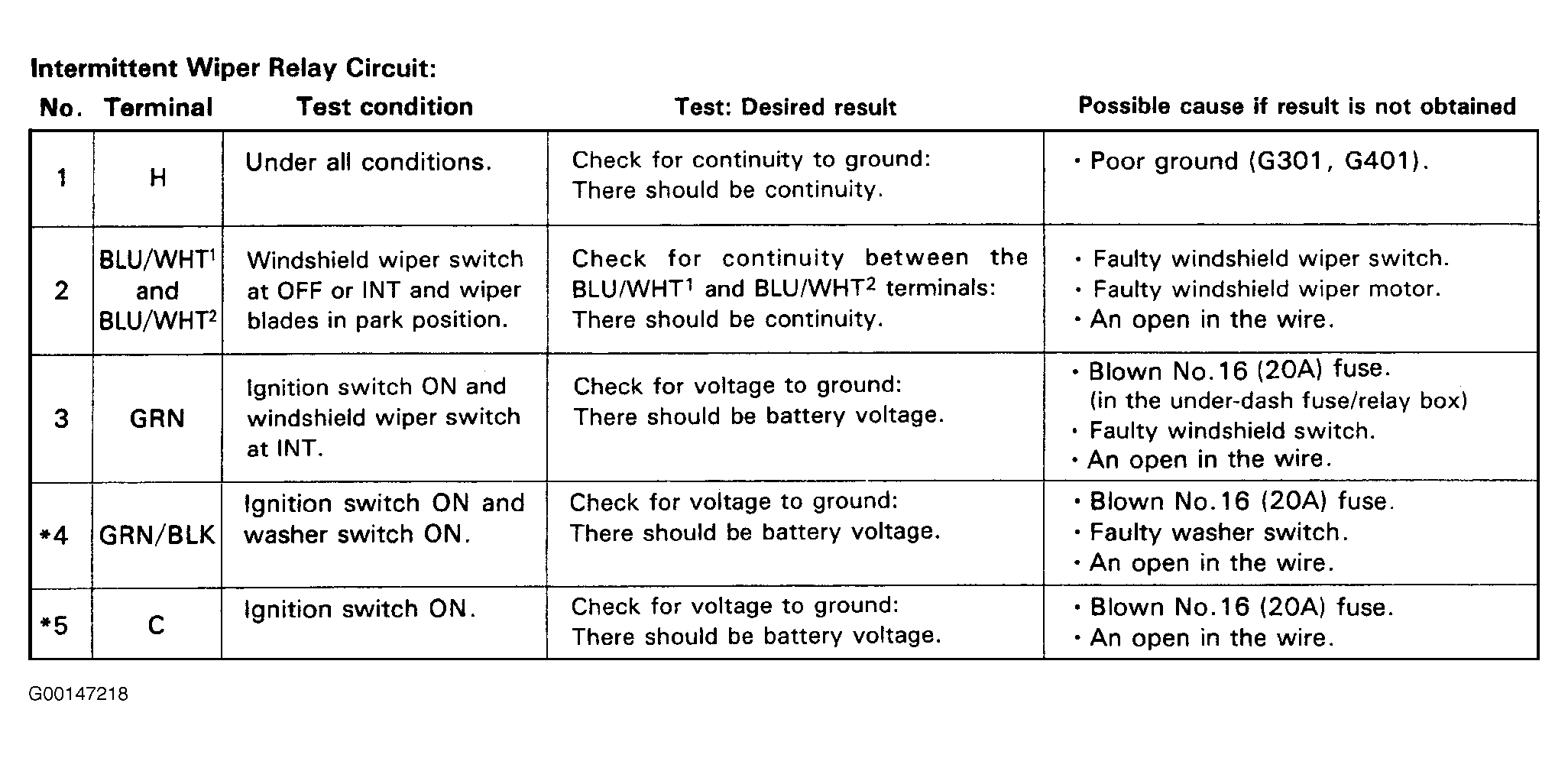 Fig 1: Intermittent Wiper Relay Circuit Input Test