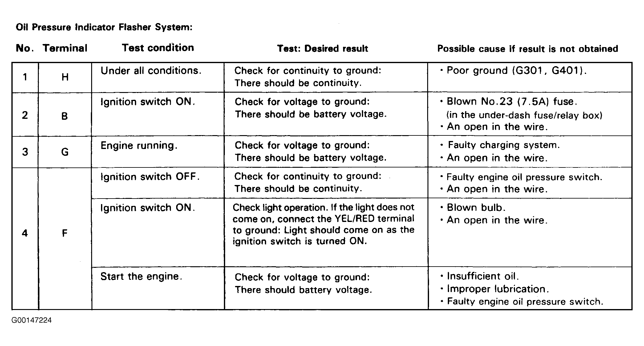 Fig 1: Oil Pressure Indicator Flasher System Input Test