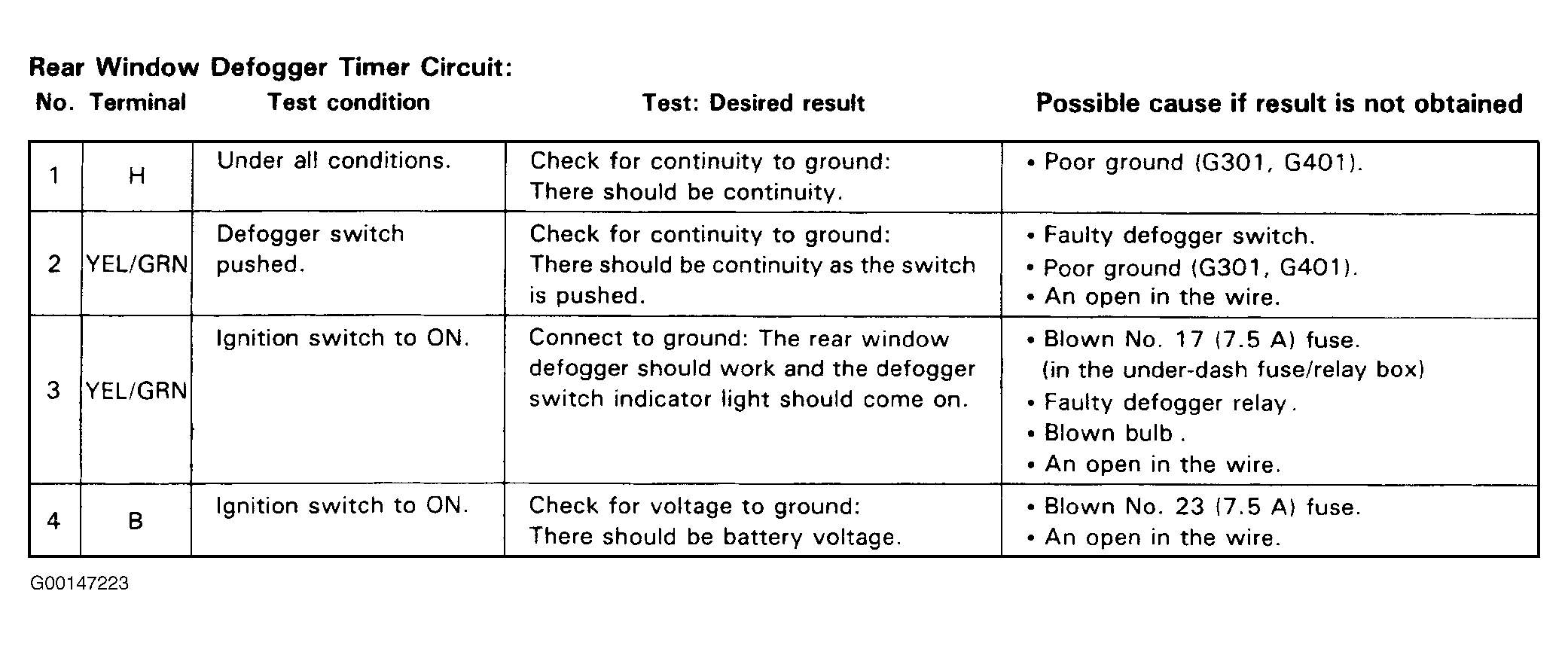 Fig 1: Rear Window Defogger Timer Circuit Input Test
