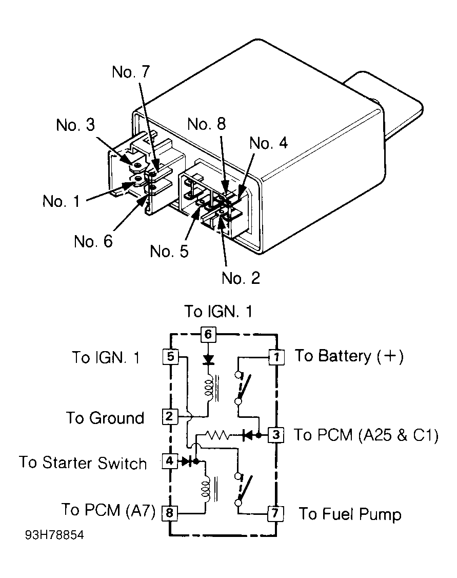 Fig 1: Identifying Fuel Pump Relay Terminals (Legend)