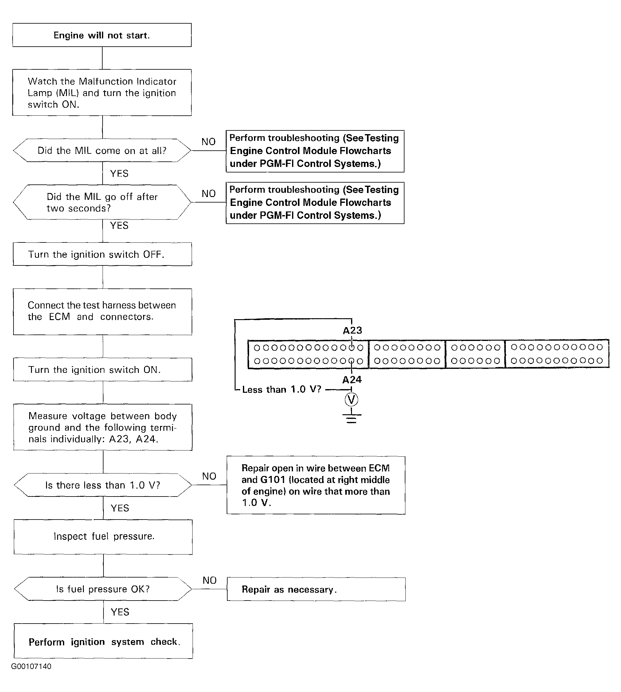 Fig 1: Engine Will Not Start Diagnostic Flow Chart