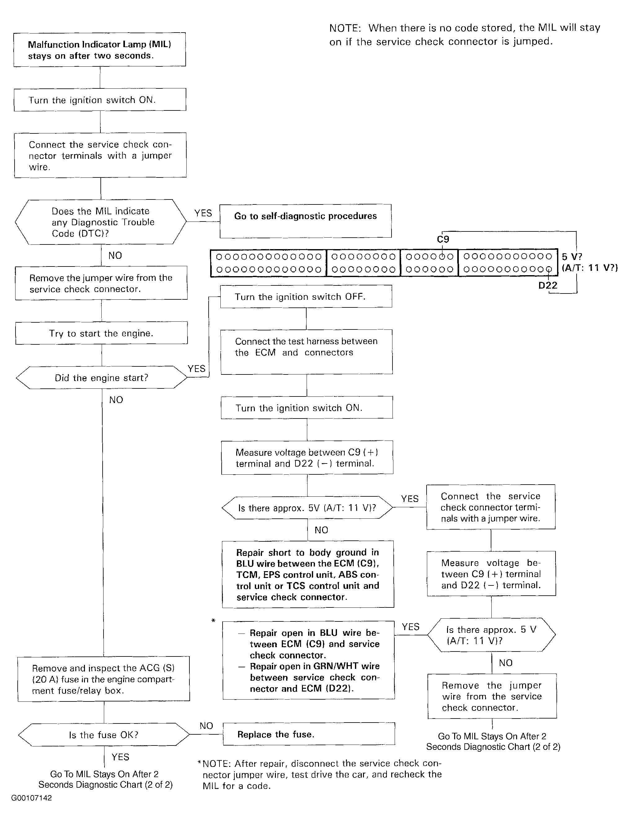 Fig 2: MIL Stays On After 2 Seconds Diagnostic Flowchart (2 Of 3)