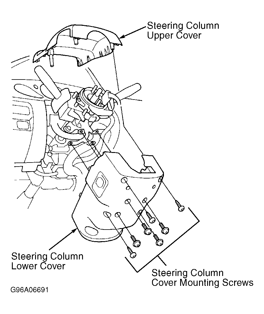Disable air bag system. See AIR BAG RESTRAINT SYSTEM article. Remove dashboard lower cover. See DASHBOARD LOWER COVER . Remove steering column cover mounting screws. See Fig 1 . Disconnect steering column switch wiring connector. Remove steering column upper and lower covers. To install, reverse removal procedure.