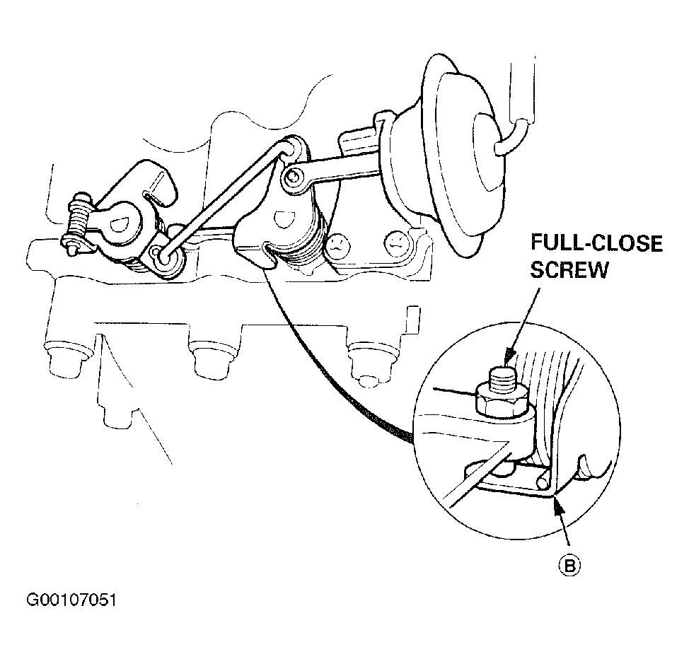 - Check that (B) of the IAB control valve is in close contact with the full-close screw when you apply 15 in. Hg (380 mm Hg) of vacuum to the IAB control diaphragm. See Fig 5
