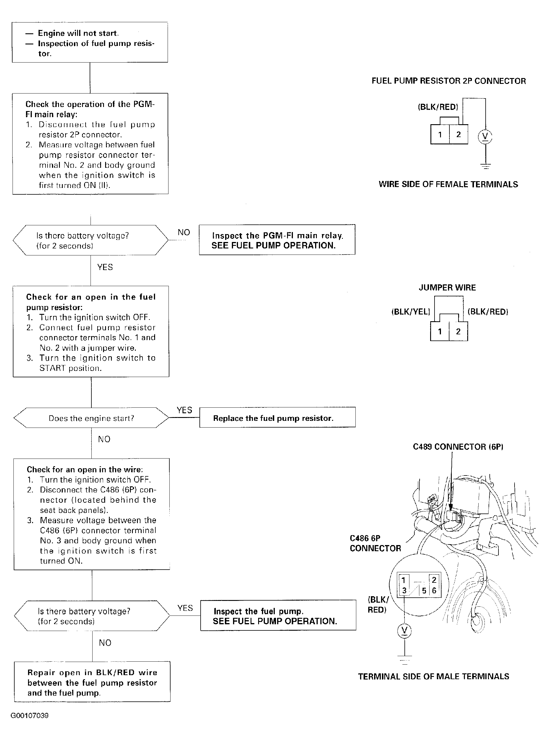 Fig 1: Fuel Pump Resistor Diagnostic Flow Chart