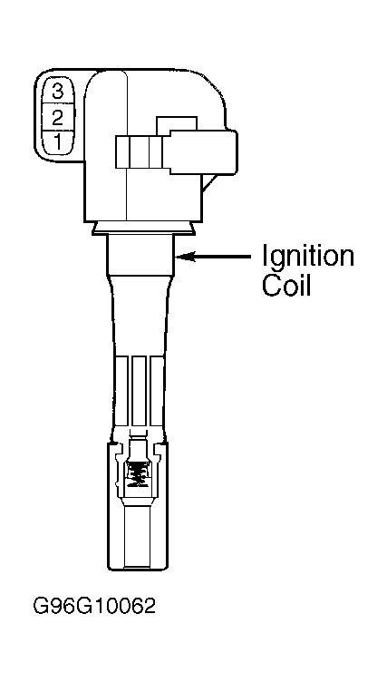 Turn ignition off. Measure primary winding resistance between ignition coil connector terminal No. 1 and terminal No. 2. See Fig 1. Resistance should be .9-1.1 ohms at 77°F (25°C). Replace coil if resistance is not within specification. Resistance specification for secondary winding is not available.
