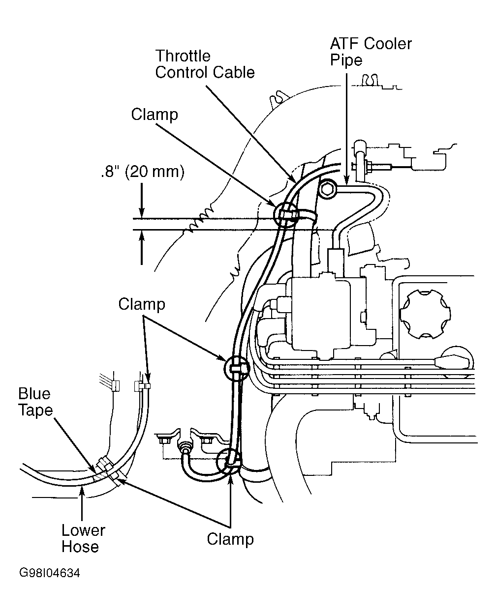 Fig 2: Identifying Throttle Cable Clamping Locations (Integra)