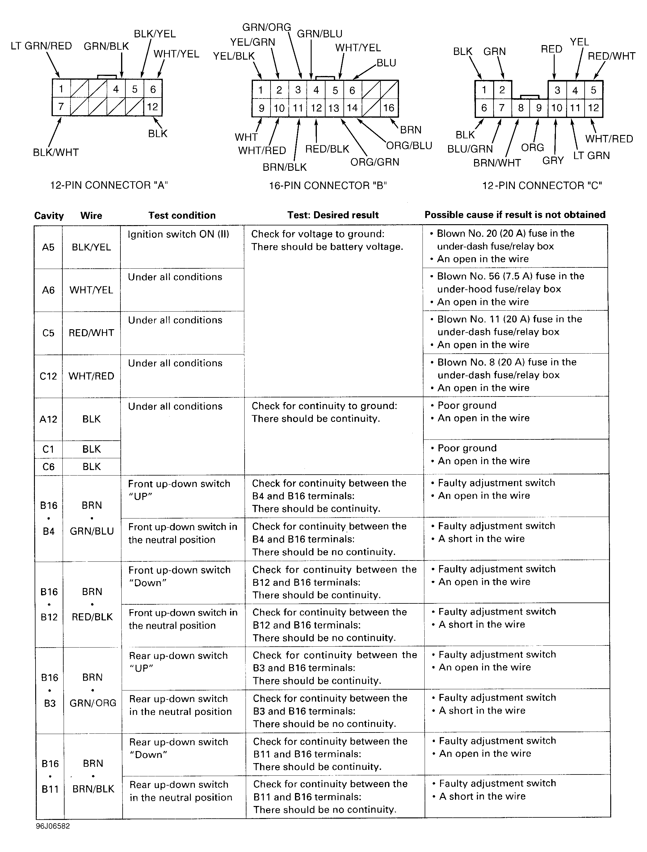 Home >> Acura >> 1998 >> 3.5RL Base >> Repair and Diagnosis >> Steering >> Steering Column >> Driver's Position Memory Systems >> Component Tests >> Power Seat Control Unit Input Test