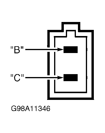 1. Check brakelight operation. If brakelights operate properly, go to step  3. If brakelights stay on continuously, check for continuity between brakelight switch terminals "B" and "C". See Fig 1 or Fig 2 . Repair or replace switch as necessary. If brakelights do not come on when brake pedal is depressed, check STOP LIGHT, HORN fuse located in underhood fuse/relay box. See FUSE IDENTIFICATION  table. See WIRING DIAGRAMS article.