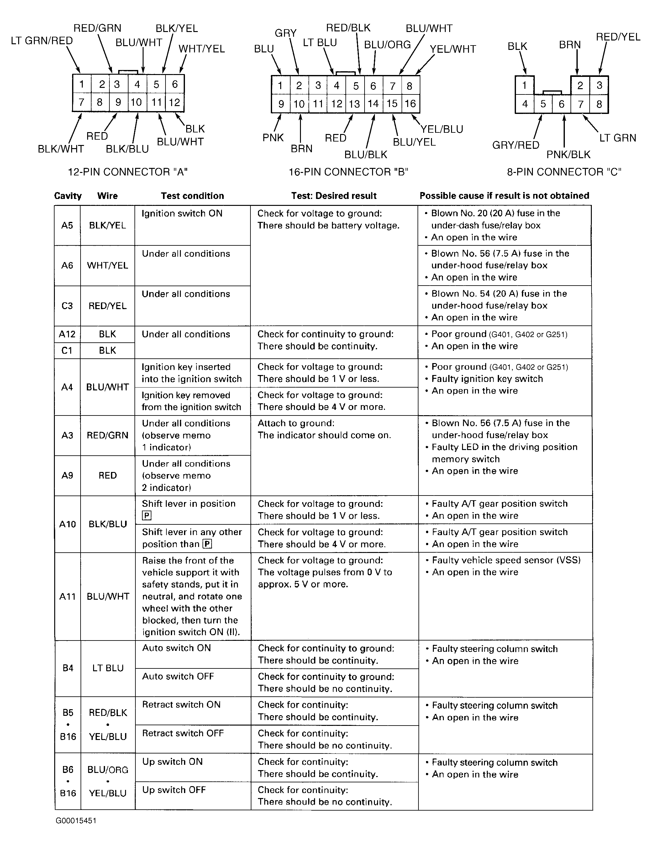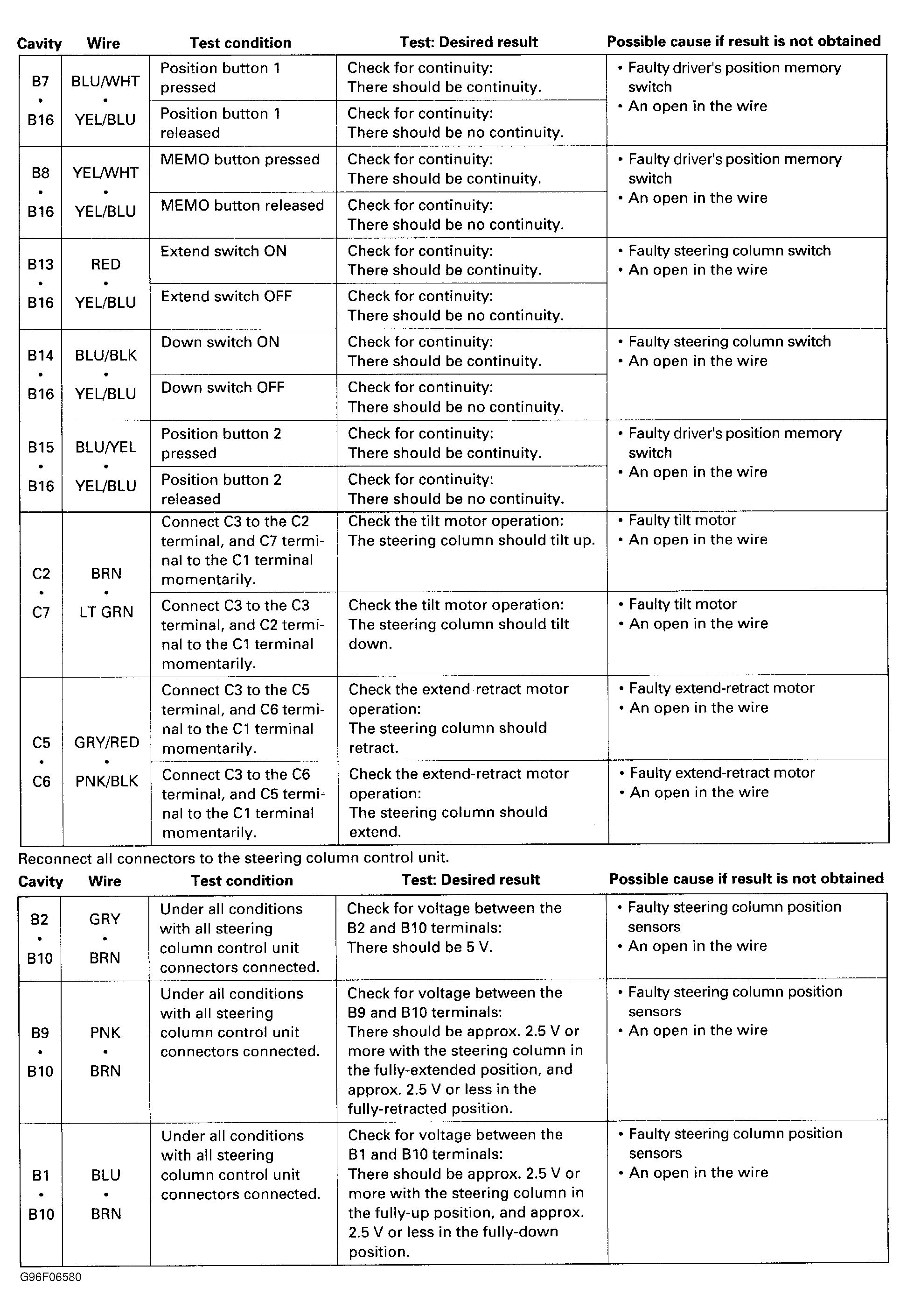 Home >> Acura >> 2000 >> 3.5RL >> Repair and Diagnosis >> Accessories & Equipment >> Memory Modules >> Driver's Position Memory System >> System Tests >> Steering Column Control Unit Input