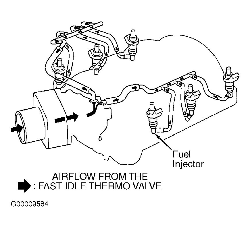 - Start engine and run at 3000 RPM, with no loads and transmission in Park or Neutral, until radiator fan comes on. Allow engine to idle. Disconnect vacuum hoses individually from each injector. See Fig 1. Connect vacuum gauge and measure vacuum at each injector hose while idling.