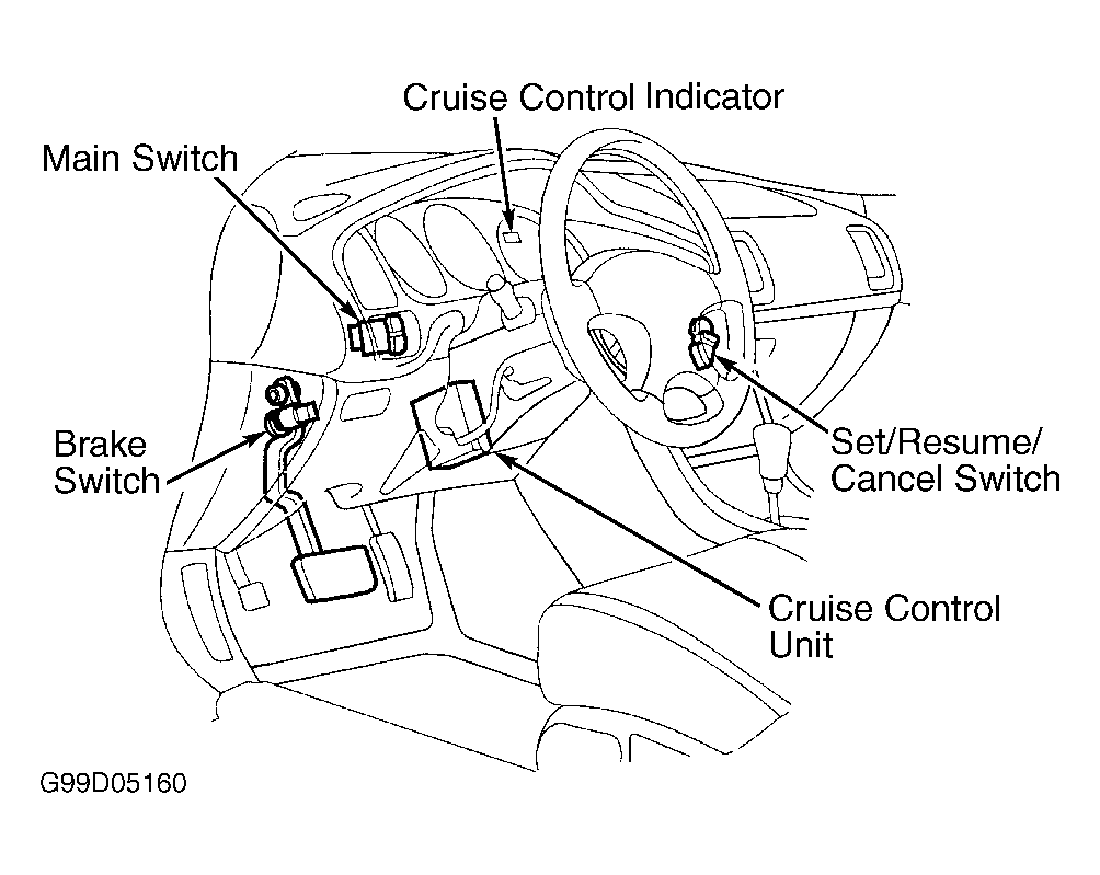 - Disable air bag system. See appropriate AIR BAG RESTRAINT SYSTEMS article. Turn ignition off. Remove instrument panel lower left cover. Remove left knee bolster. Cruise control unit is located right of steering column. See Figure .
