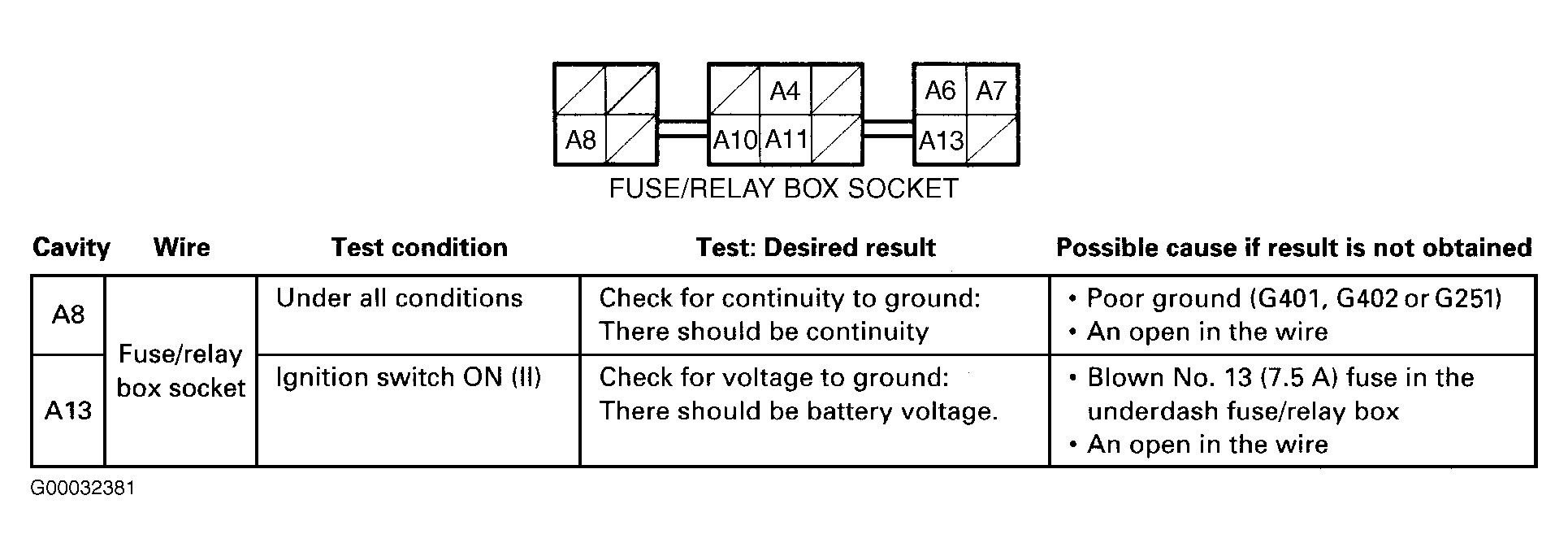 Remove driver's underdash fuse/relay box and remove driver's multiplex control unit. See UNDERDASH FUSE/RELAY BOX under REMOVAL & INSTALLATION. Check connector and terminals for damage, corrosion or improper contact. Repair as necessary. If connections are okay, perform driver's multiplex control unit input test. See Fig 1. If all input tests are okay, substitute known-good driver's multiplex control unit and retest system. If problem is fixed, replace original driver's multiplex control unit.