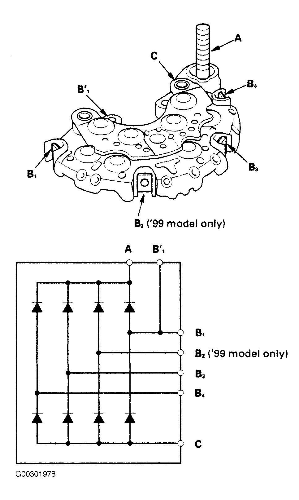Home >> Acura >> 2001 >> 3.2CL Base >> Repair and Diagnosis (Single Page) >> Electrical >> Charging Systems >> Generators & Regulators >> Bench Testing >> Rectifier