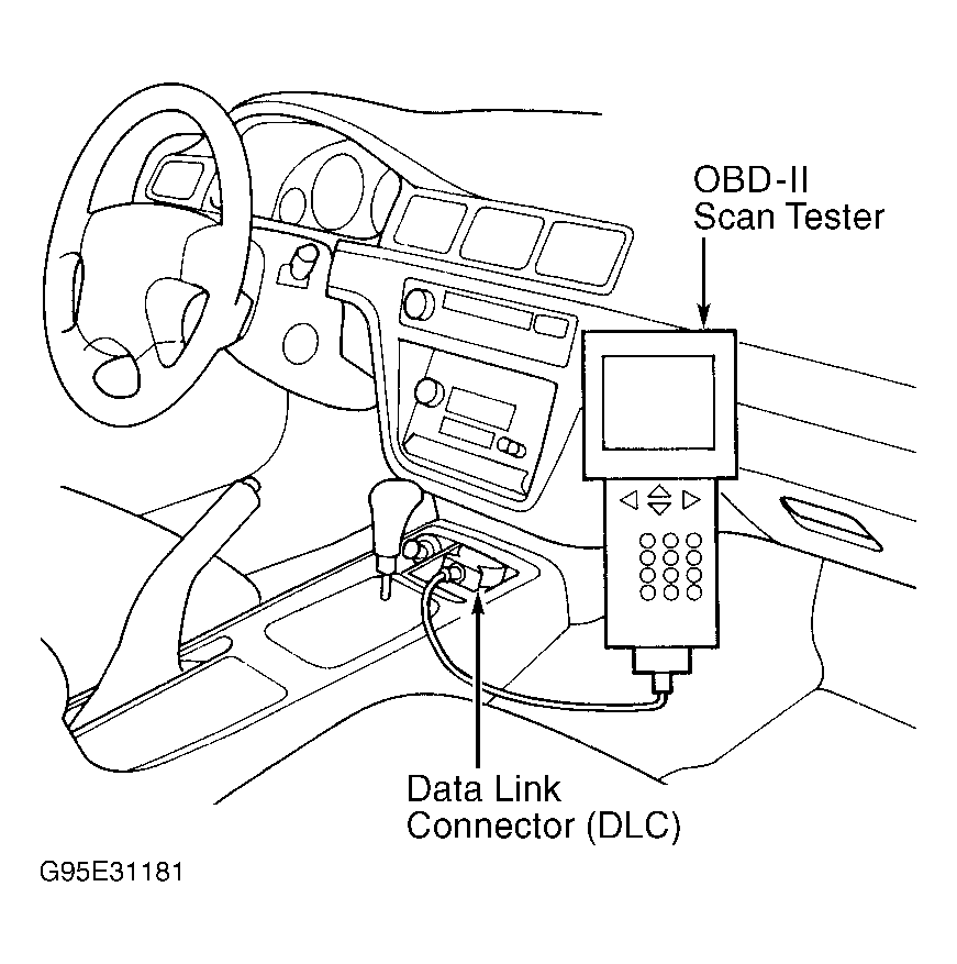 Locate Data Link Connector (DLC) in center console, behind ash tray. See Fig 1. Connect and operate scan tool in accordance with manufacturer's instructions.