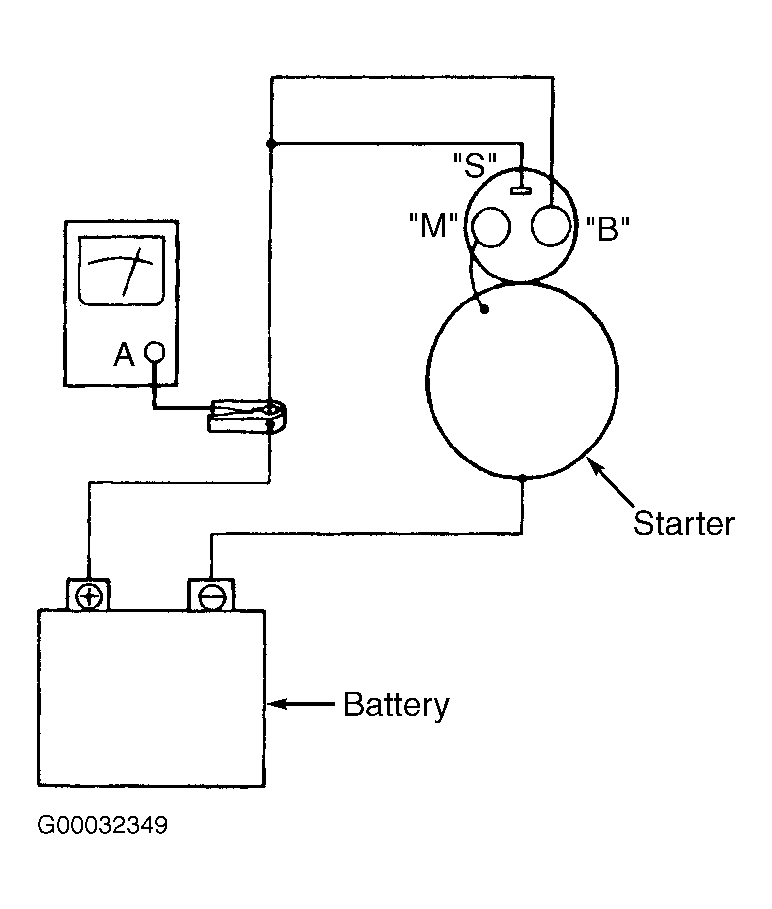 - Disconnect starter motor wire from starter solenoid "M" terminal. Clamp starter firmly in a vise. Using wire equivalent to battery cables, connect one jumper wire between positive battery terminal and starter terminal "S" and a second jumper wire between negative battery terminal and starter body. Connect a third jumper wire between negative battery terminal and starter terminal "B". DO NOT leave battery connected for more than 10 seconds. Starter pinion should extend. Remove jumper wire from starter terminal "B". Starter pinion should not retract. Remove jumper wire from starter body. Starter pinion should retract immediately. If starter pinion does not operate as specified, repair or replace starter pinion as necessary. If starter pinion operates as specified, go to next step.