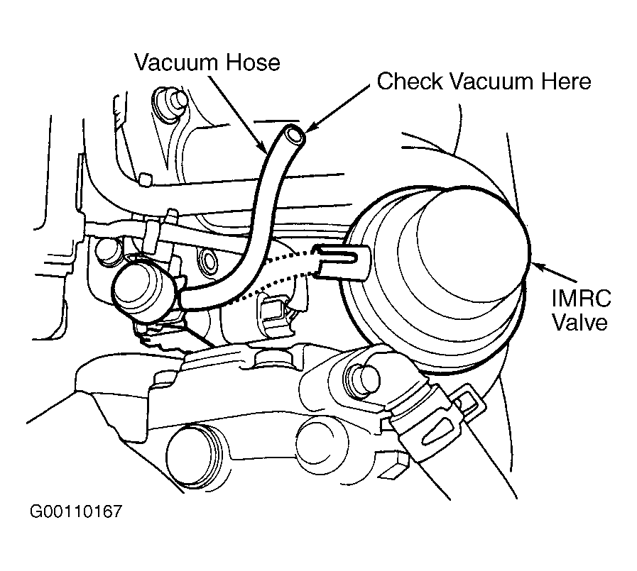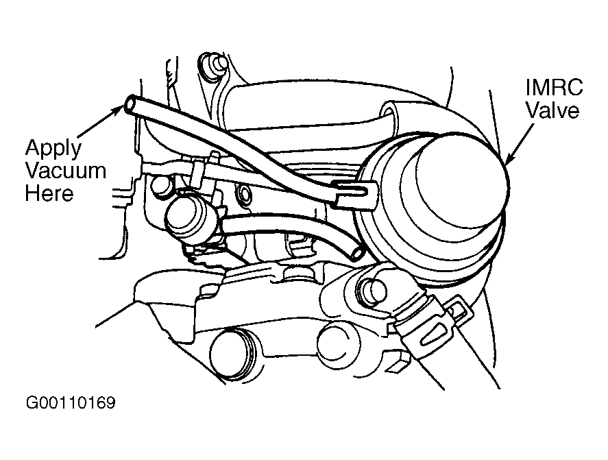 - Turn ignition switch off. Connect vacuum pump to IMRC valve and apply vacuum. See Fig 3 . If IMRC valve holds vacuum, go to next step. If IMRC valve does not hold vacuum, replace IMRC valve assembly.