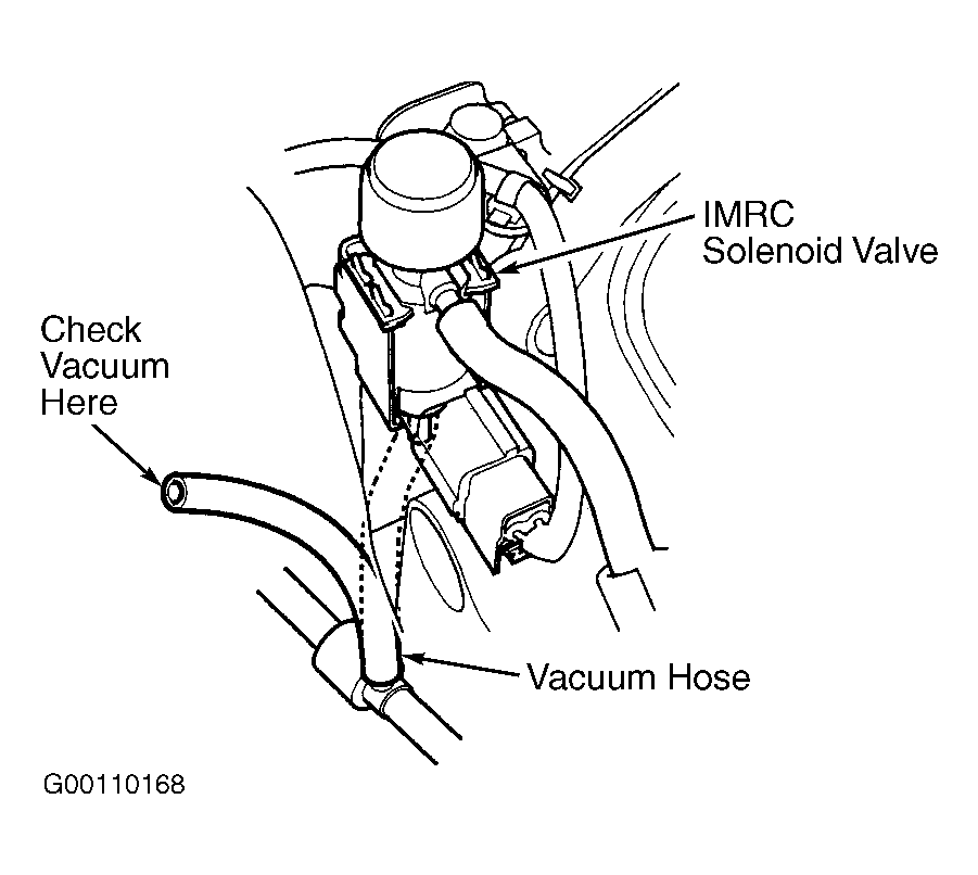 - Check vacuum hose between IMRC valve and IMRC solenoid valve. If vacuum hose is okay, go to next step. If vacuum hose is faulty, repair or replace as necessary.