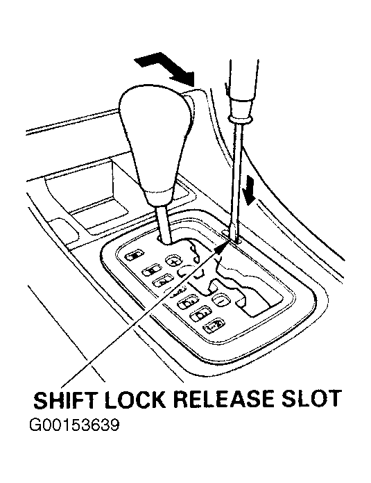3. Shift the gearshift lever into the "P" position while pushing the shift lock release button. See Fig 1.