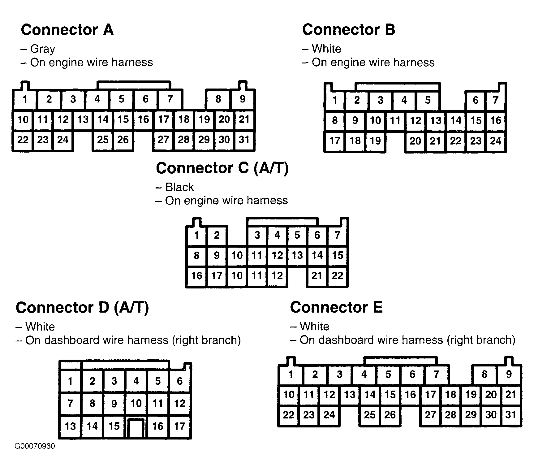 - Turn ignition switch off. Disconnect PSP switch 2-pin harness connector. Turn ignition switch on. Measure voltage by backprobing between Gray 31-pin ECM/PCM harness connector terminal No. 24 (Brown/Yellow wire) and White 31-pin ECM/PCM harness connector terminal No. 16 (Light Green/Black wire). See Figure . If battery voltage is not present, go to next step. If battery voltage is present, replace PSP switch.