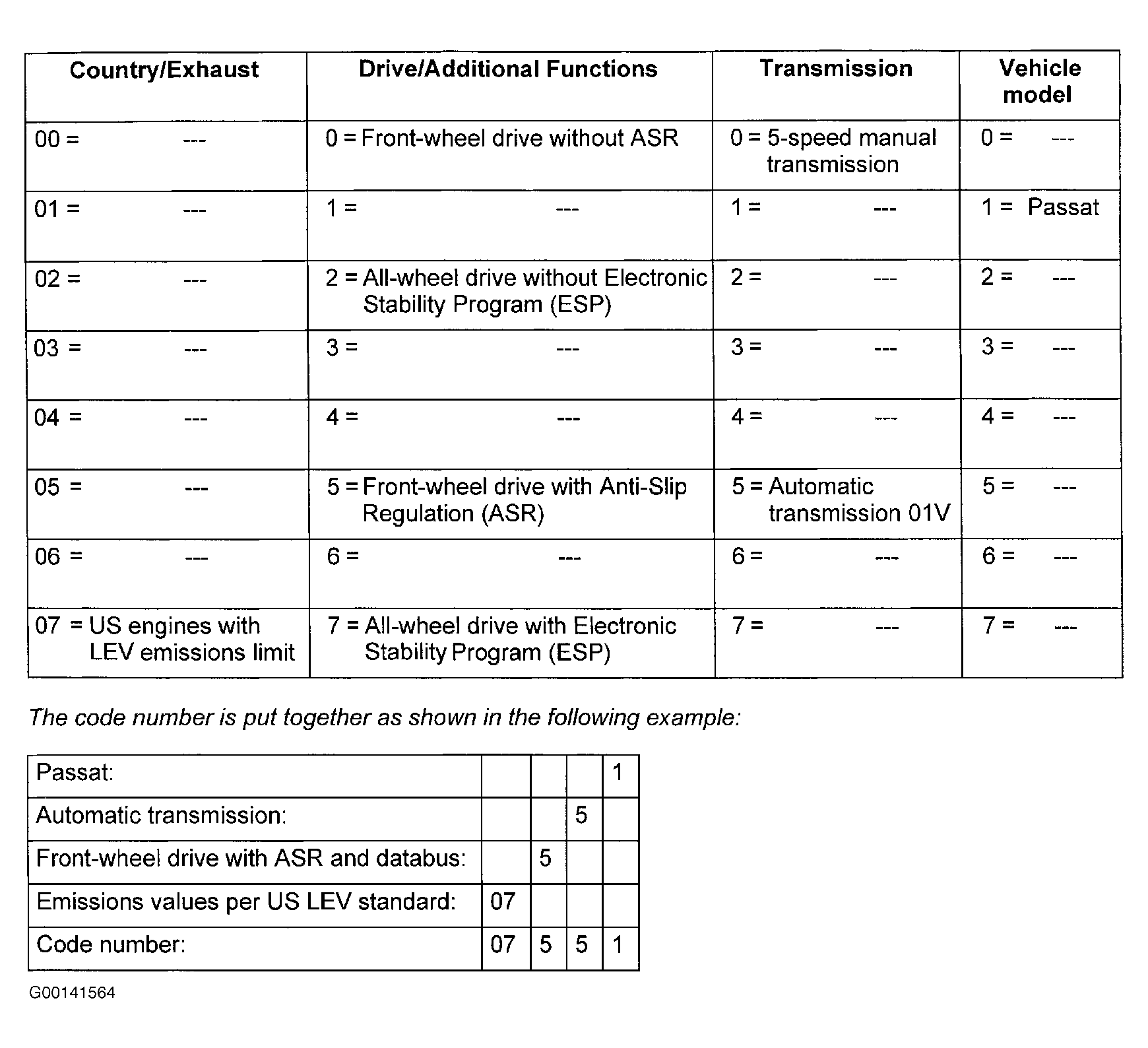 For Passat 2.8L with engine code ATQ, see Fig 1. For EuroVan 2.8L with engine code AXK, see Fig 2. For Jetta with engine code AFP, see ENGINE CONTROL MODULE CODING VARIANTS (2.8L W/ENGINE CODE AFP) table.