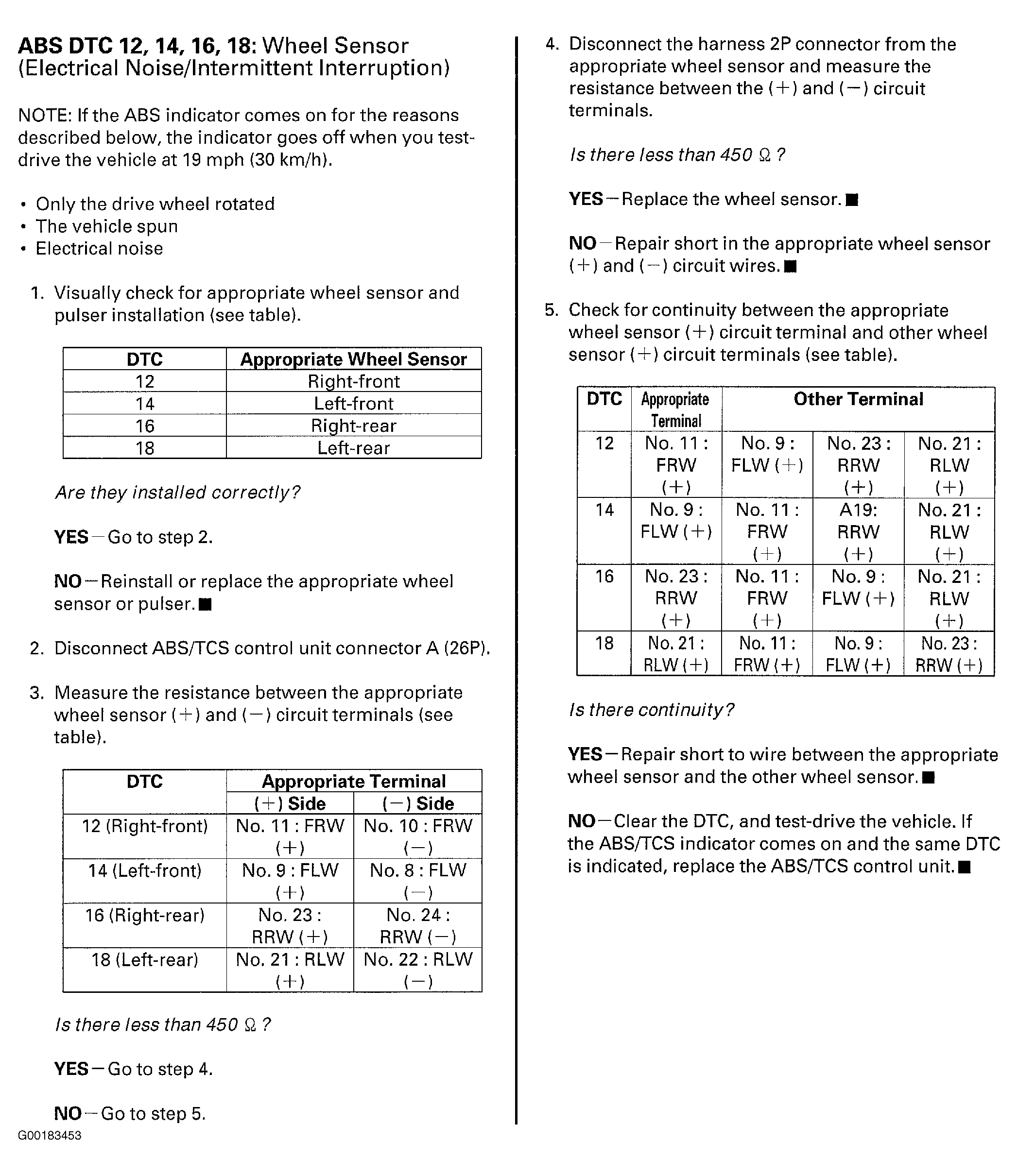 Right-Rear wheel sensor, Wheel Sensor Pulse Signal. - DTC 18