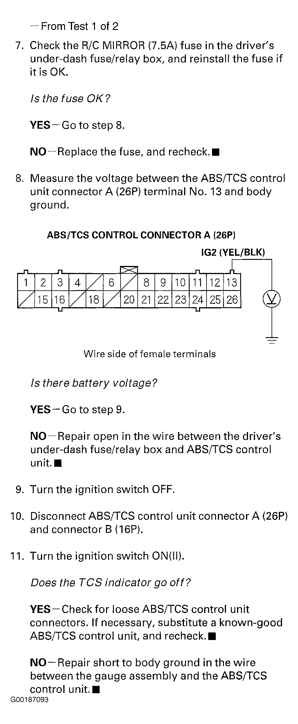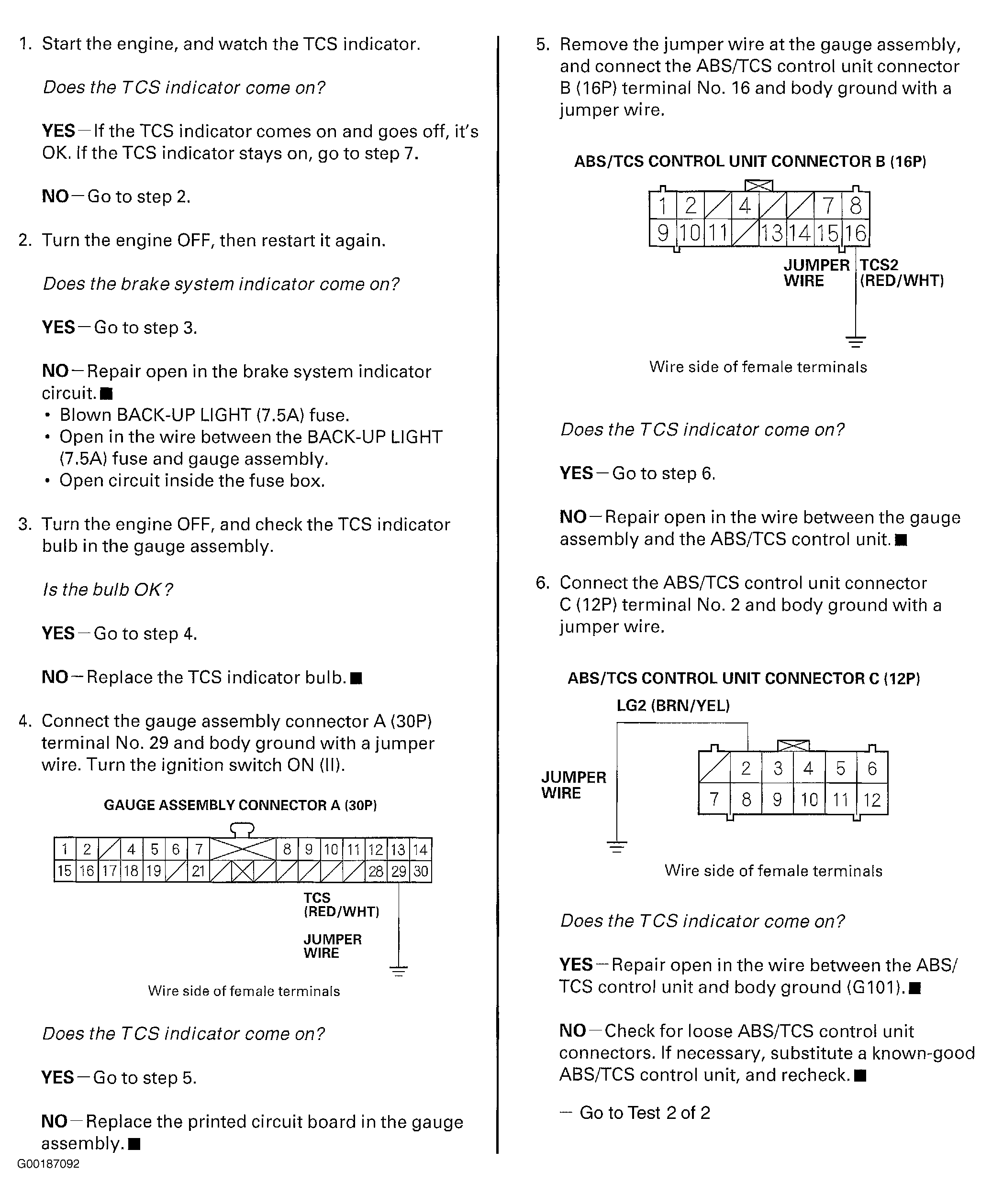 - When the TCS indicator and MIL are both ON, trouble shoot the PGM-FI system first.