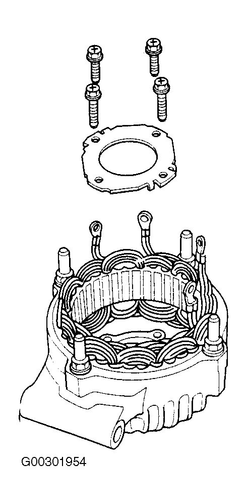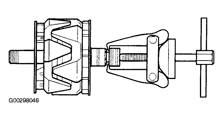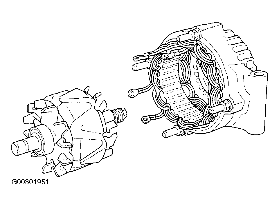 12. Inspect the rotor shaft for scoring, and inspect the bearing journal surface in the stator housing for seizure marks. If either the rotor or stator housing is damaged, replace the alternator. If both the rotor and the stator housing are OK, go to next step.