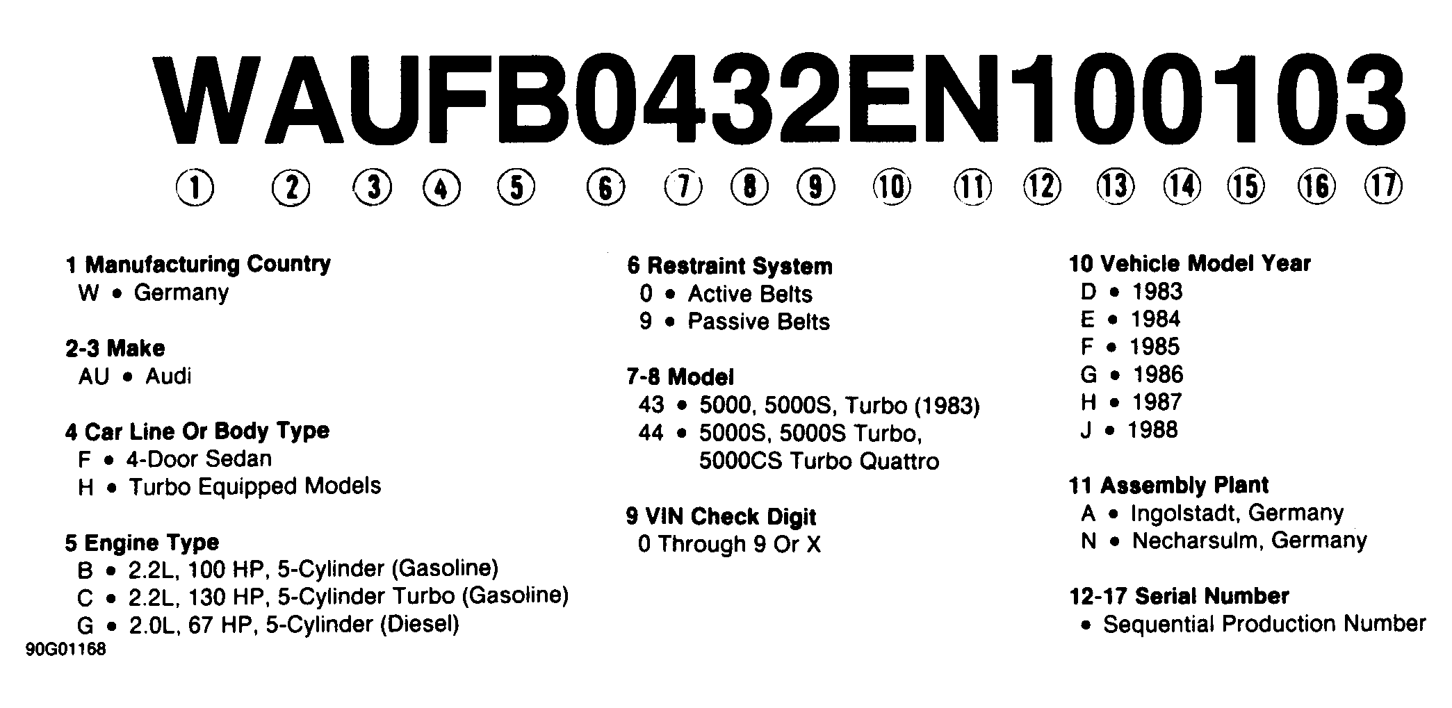 Home >> Audi >> 1983 >> 5000 Base >> Repair and Diagnosis (Single Page) >> Engine Performance >> Application >> Engine/VIN Id >> Model Identification >> Notes