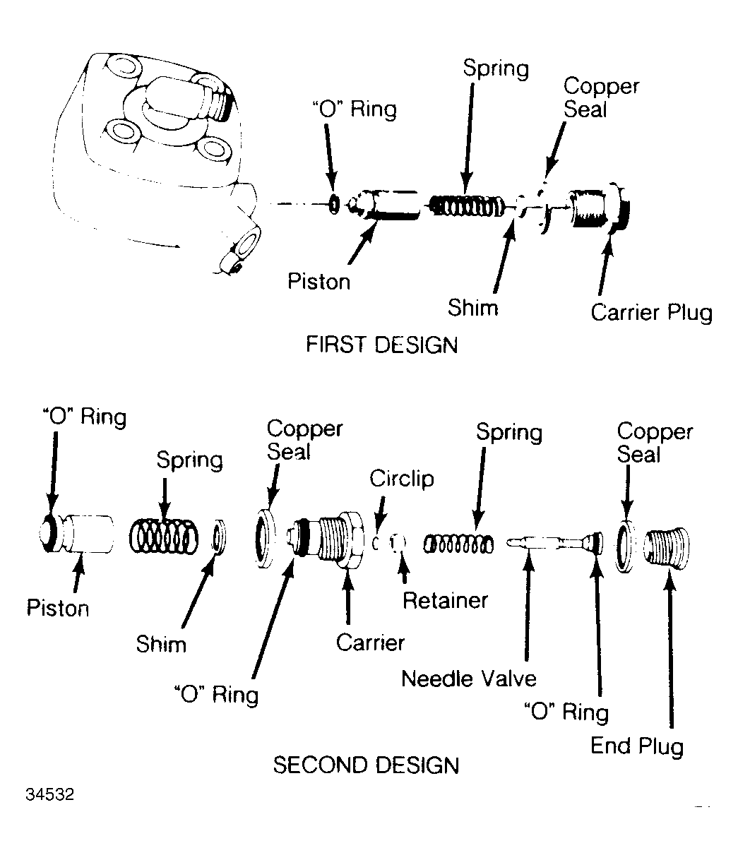 5. Loosen line pressure regulator nut. Remove shims, spring(s) and plunger. Raise system pressure by adding shims; lower pressure by removing shims. Be sure "O" rings are in good condition. If piston is scored or damaged, fuel distributor must be replaced. See Fig 1 .