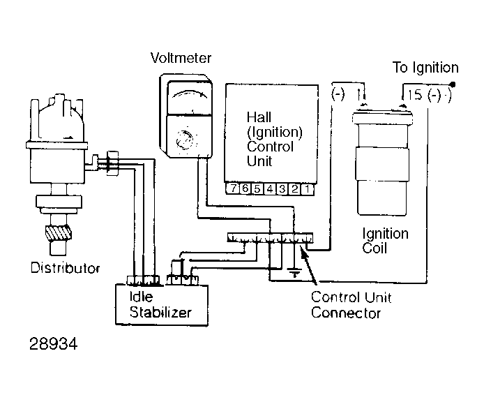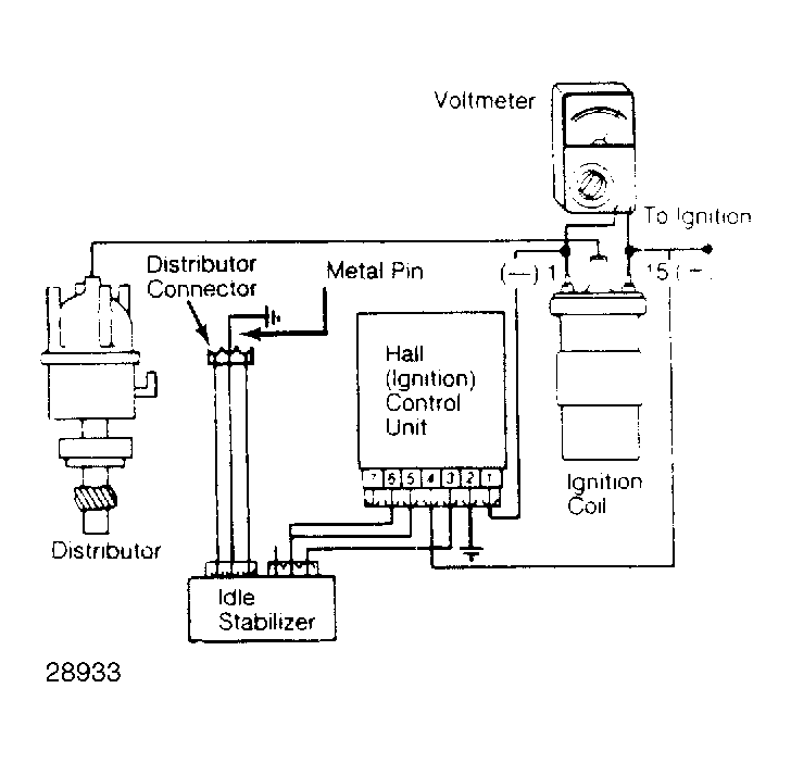 Fig 1: Checking Hall Control Unit Check voltage at ignition coil primary terminals.
