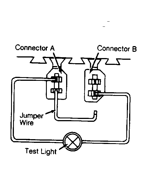 - Connect a jumper wire to other terminal in connector A. Touch other end of jumper wire to remaining terminal in connector B for at least 4 seconds. Fault codes will now be displayed by the flashing CHECK light (California vehicles) or test light (Federal vehicles).