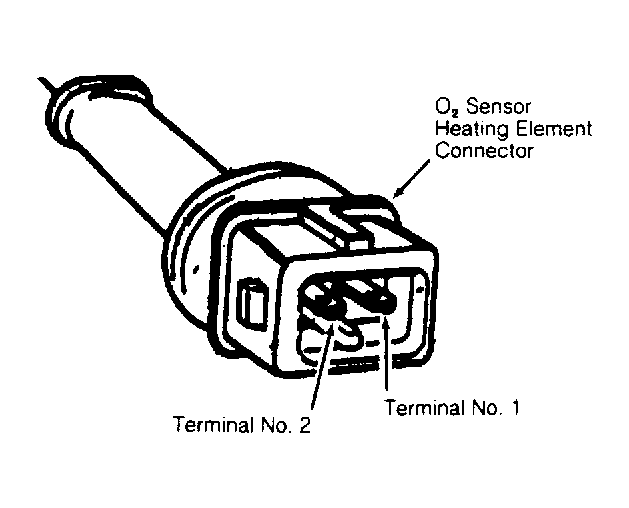 - Disconnect O2 sensor heating element connector from harness connector. Connect voltmeter between harness connector terminals No. 1 and No. 2. See Fig 1 .