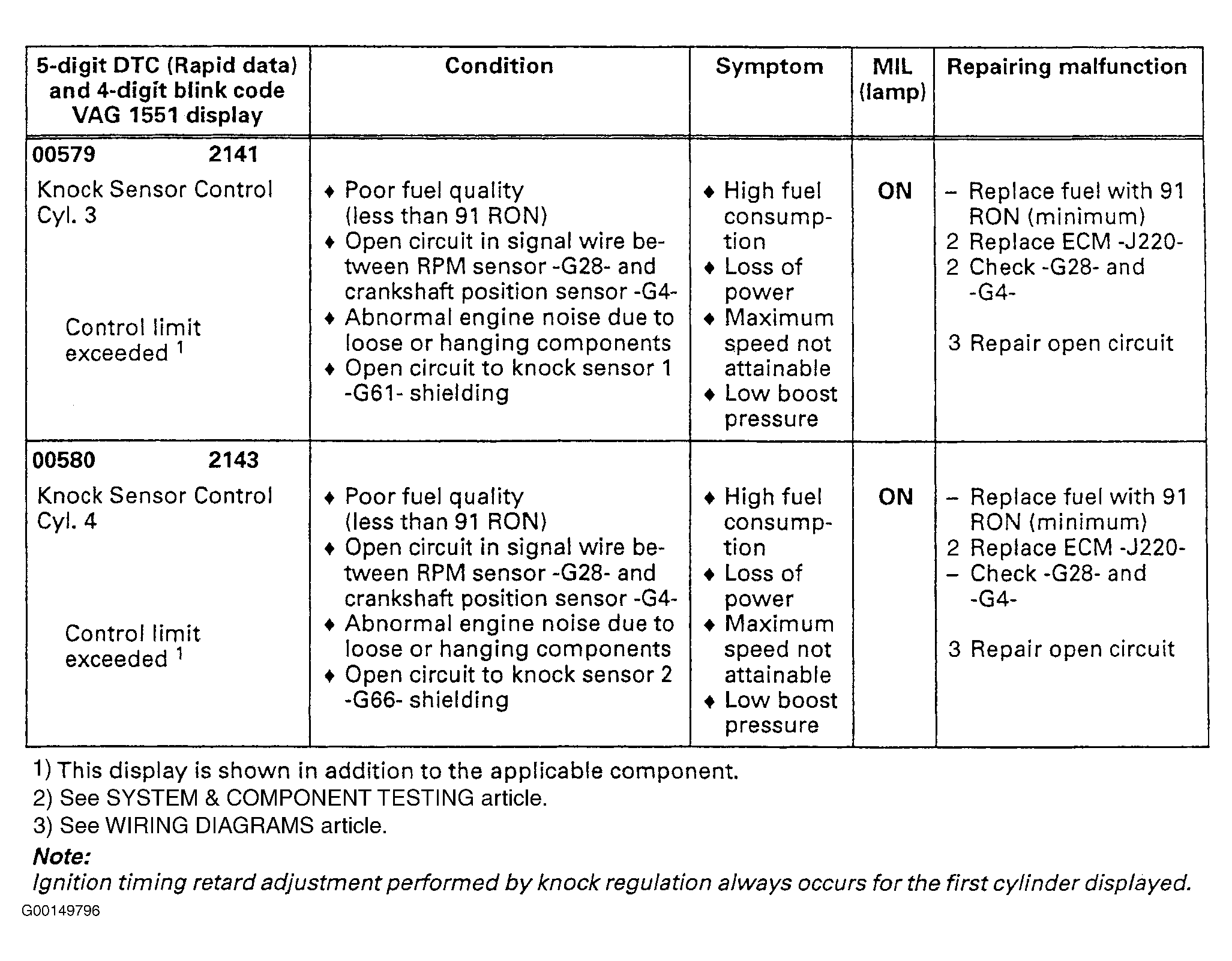 DTC 00580/2143 - Knock Sensor Control CYL. No. 4.