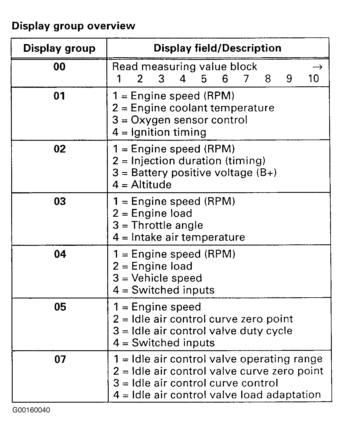 - Press buttons -0- and -8- to select "READING/MEASURING VALUE BLOCK" function 08. Display will read - "RAPID DATA TRANSFER" "READING/MEASURING VALUE BLOCK".