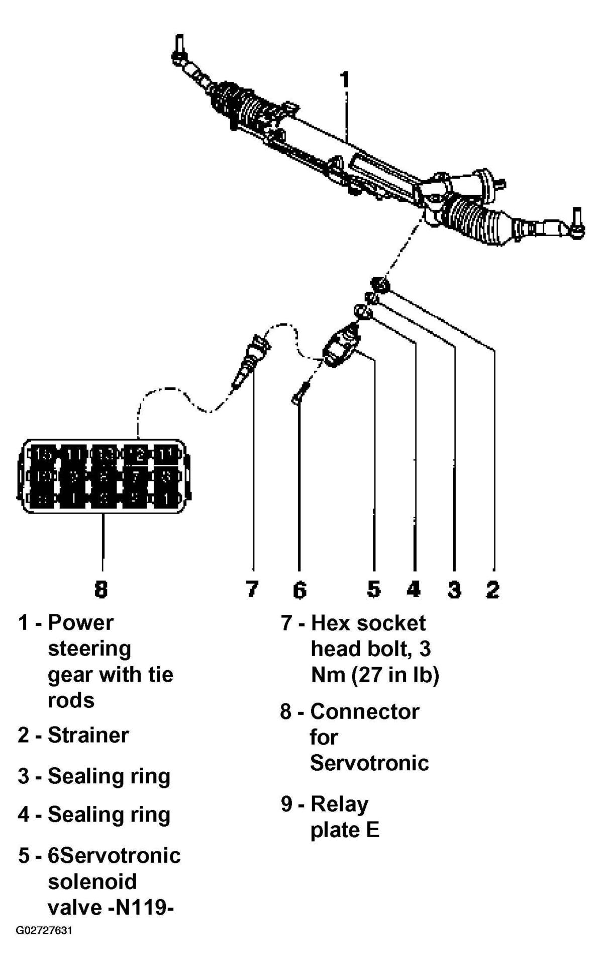 • When replacing the Servotronic steering gear, the Servotronic valve may have to be exchanged to match the connector.