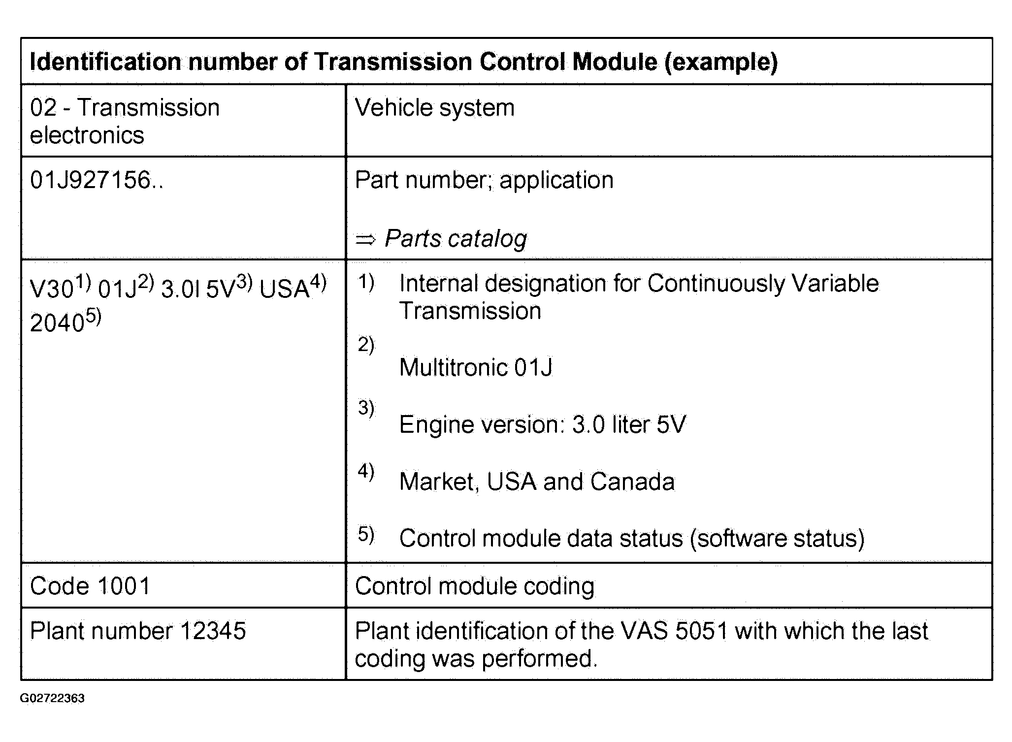 | 00000 | Impermissible code If this code is displayed, an incorrect transmission may have been installed or it has been incorrectly coded. Check control module identification number. See Figure. |