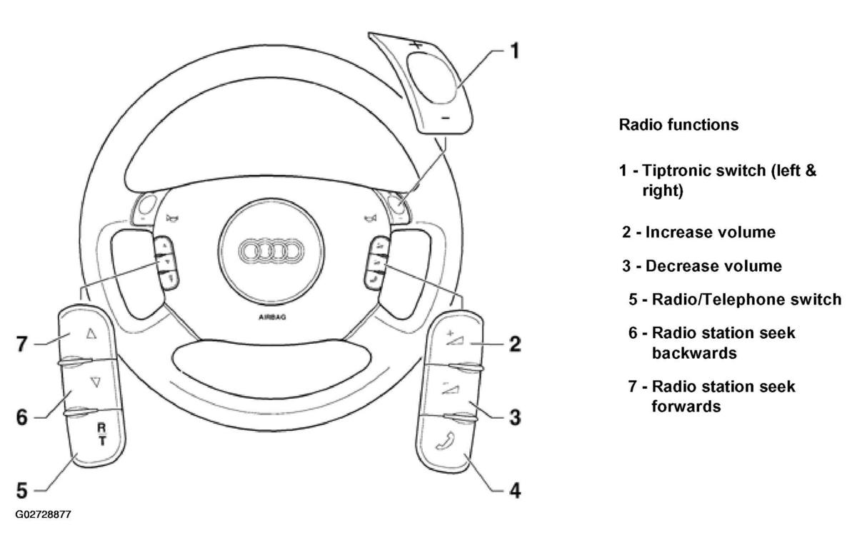 Fig 1: View Of Multi-Function Steering Wheel Switch/Button Functions (Radio Functions)