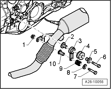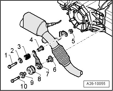 Fig 5: Exploded View Of Front Exhaust Pipe Suspension, Left Side - Vehicles With Multitronic Transmission