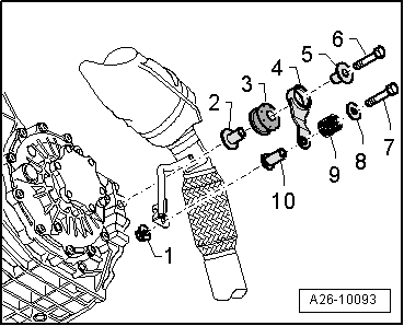 - Individual components of mounting: Vehicles with manual transmission, refer to Fig 4, vehicles with multitronic transmission, refer to Fig 5.