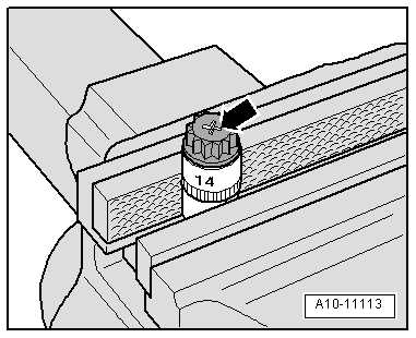 -- Check if the alignment sleeves -A- for centering the engine/transmission are in the cylinder block and insert them if they are not.