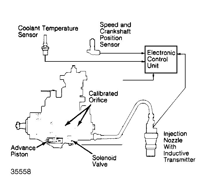 With the distributor injection pump stopped, a pre-loaded injection timing spring holds the injection timing piston in starting position. The pressure control valve, in conjunction with the spill orifice, keeps the fuel pressure in the pump's inside chamber proportional to the engine speed during operation of pump. See Fig 1.