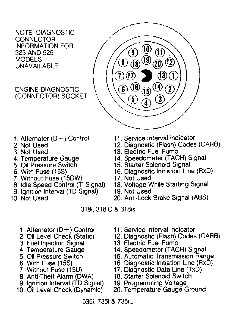 Data exchange between control unit and BMW diagnostic software occurs via Diagnostic Initiation Line (RxD) and Diagnostic Data Line (TxD) in engine diagnostic (connector) socket. See Fig 1 .