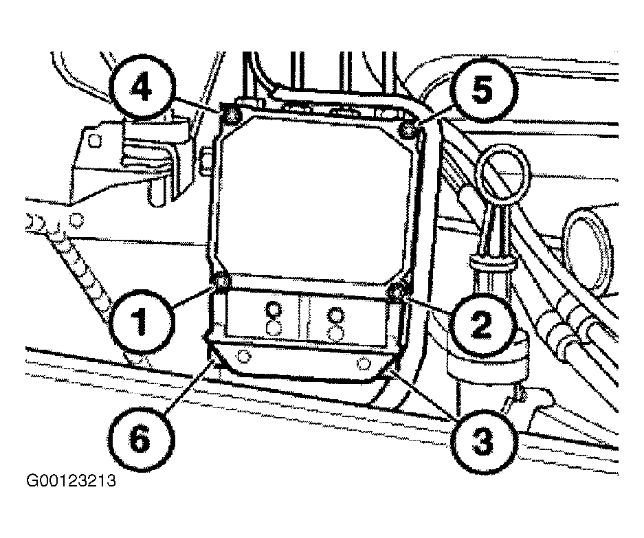 4. Press control module onto hydraulic unit and screw in new screws (1+2) evenly (do not tighten down) until control module is resting evenly on hydraulic unit. Insert screws (3-6), do not tighten yet. Tighten screws (1-6) in specified sequence with torque wrench. See Fig 3 .