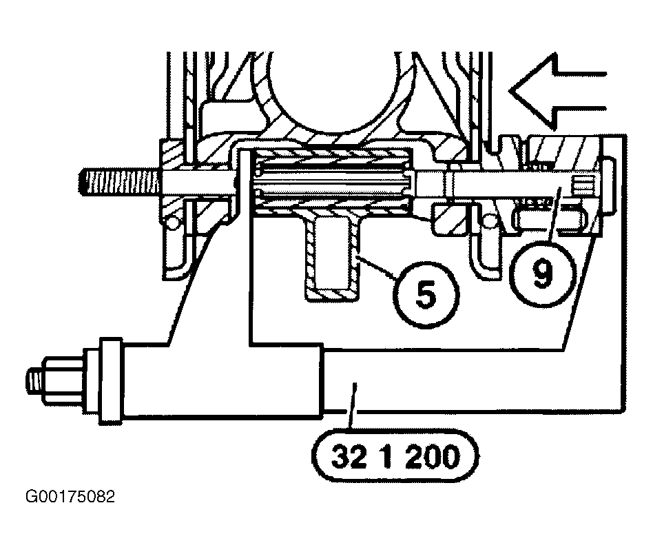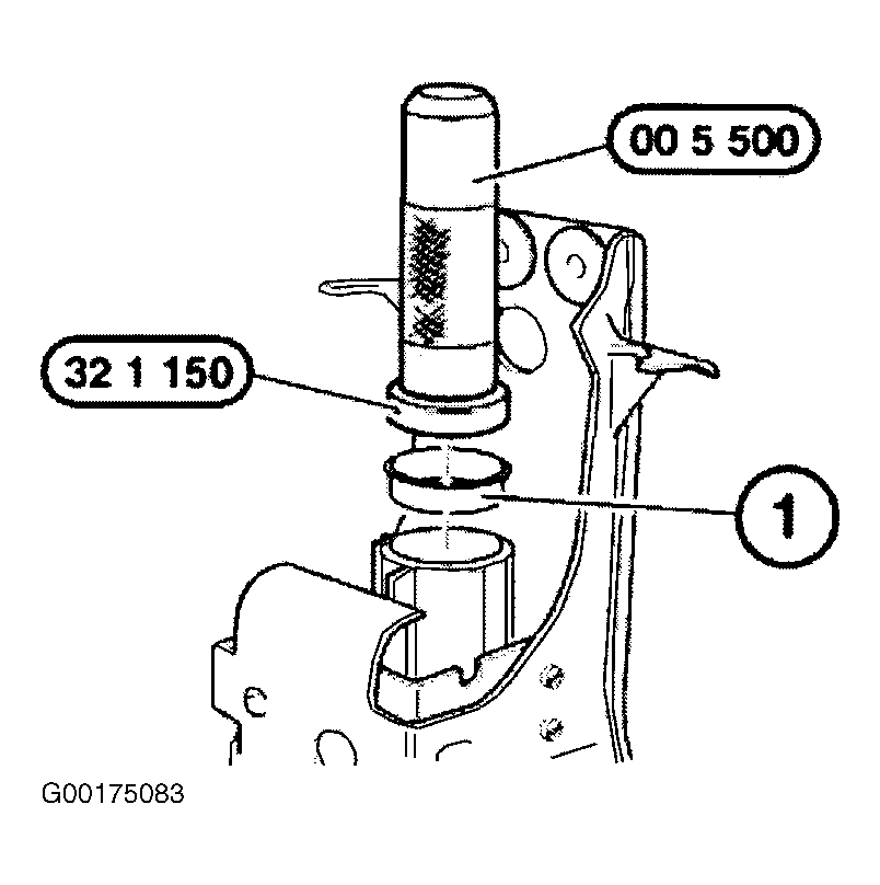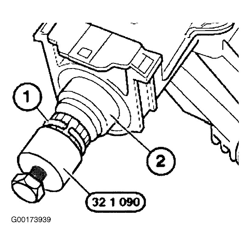 5. Press contact ring out of new bearing. Drive in new bearing (1) with special tools (32 1 150) and (00 5 500). See Fig 2.