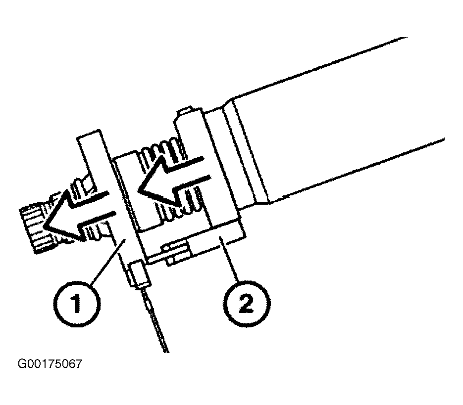 7. Ensure pin for securing rotation (2) engages in steering angle sensor (1). See Figure.