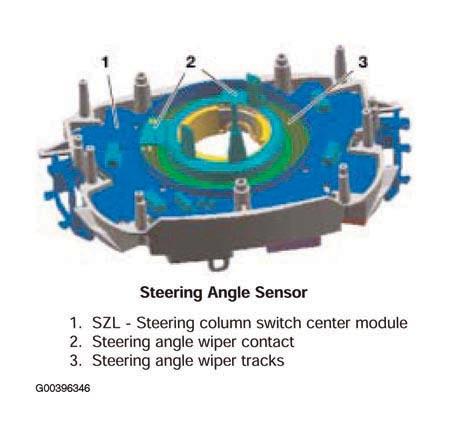 The steering angle sensor is integrated in the Steering Column Switch Center (SZL) module. The steering angle positions are transferred by Bus signals to other control modules. See Fig 1.