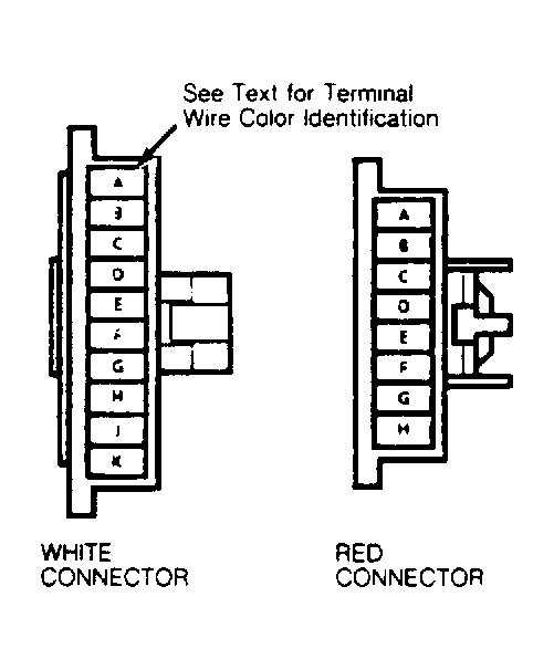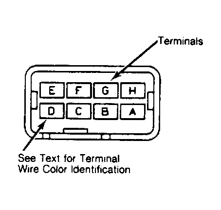 . Momentarily touch terminals "B" (Dark Blue wire), "C" (Brown wire), "D" (Dark Green wire), "E" (White wire), and terminal "F" (Yellow wire) with the other end of jumper wire.
